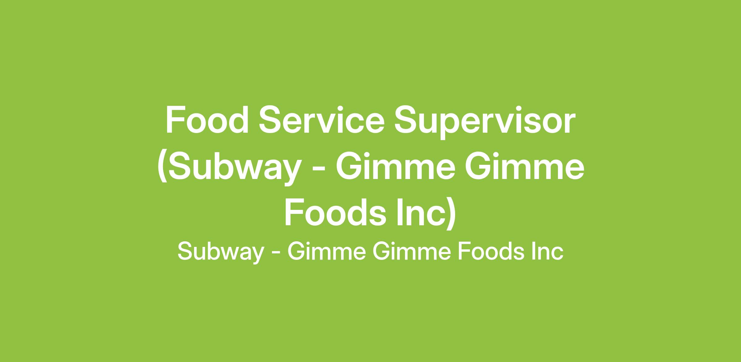 Employer: Subway - Gimme Gimme Foods Inc