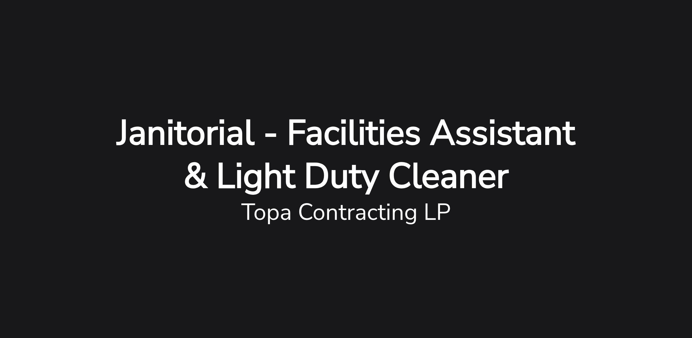 Position Title: The Facilities Assistant (Temporary Coverage) and Light Duty Cleaner